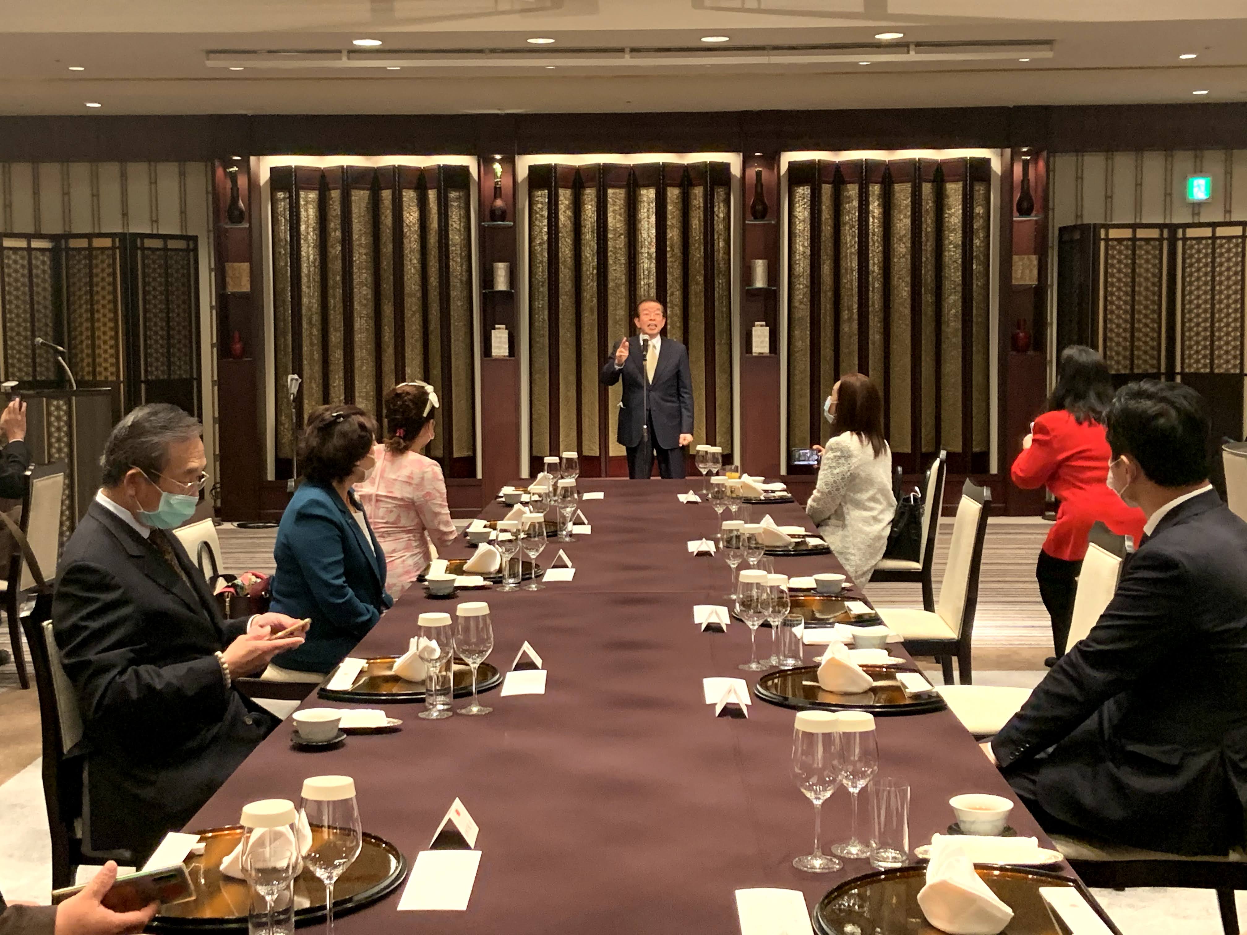 會中謝美香報告,去年2月日本疫情爆發以來,醫療用品匱乏,承蒙代表處介紹,前後進口20多個貨櫃的醫療物資到日本,獲日本經濟產業省頒贈感謝狀,身為臺商能間接為外交盡一份心力,倍感榮幸,今後政府或駐外機構若有需要協助的地方,一定不遺餘力。
